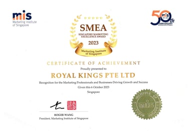 Singapore MARKETING EXCELLENCE Award - 2023 Awarded by Mr Roger Wang President,