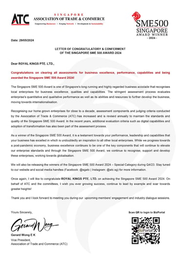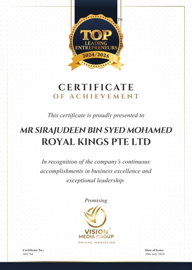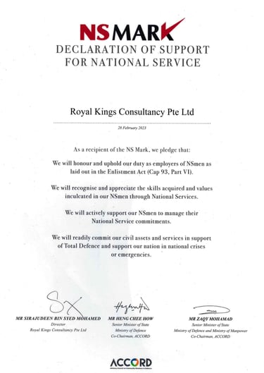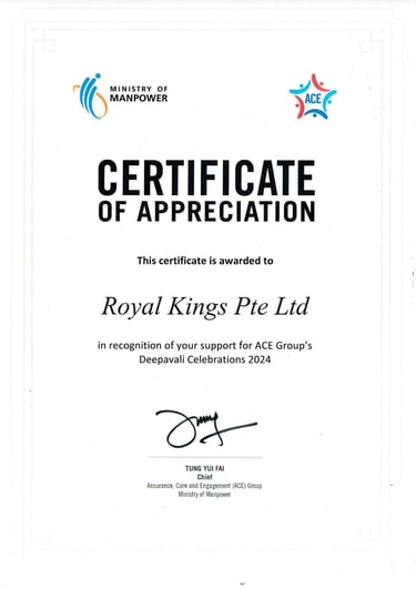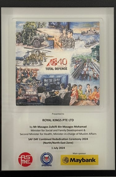 ROYAL KINGS PTE. LTD. SAF DAY - 2024 Awarded By Mr Masagos Zulkifli, Minister for Social and Family Development & Second Minister For Health, Minister-in-charge of Muslim Affairs.