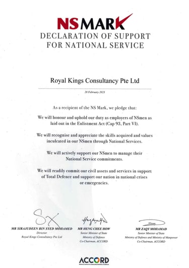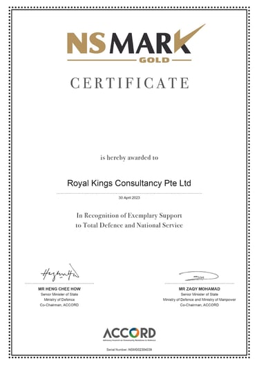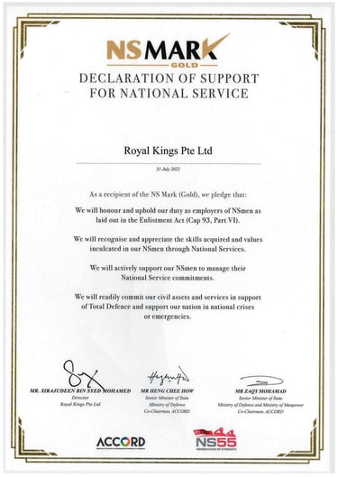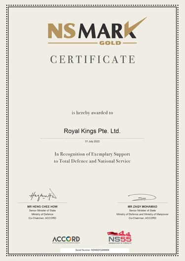ROYAL KINGS PTE. LTD. SAF DAY - 2022 Awarded by Dr Ng Eng Hen
