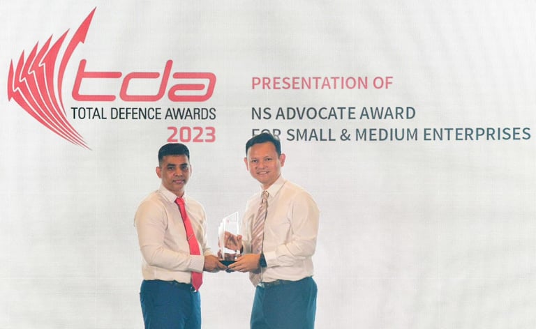 TOTAL DEFENCE Awards - 2023 Awarded to Royal Kings Pte Ltd by Mr Zaqy Mohamad Senior Minister of State for Manpower & Ministry of Defence of Singapore Deputy Leader of the House