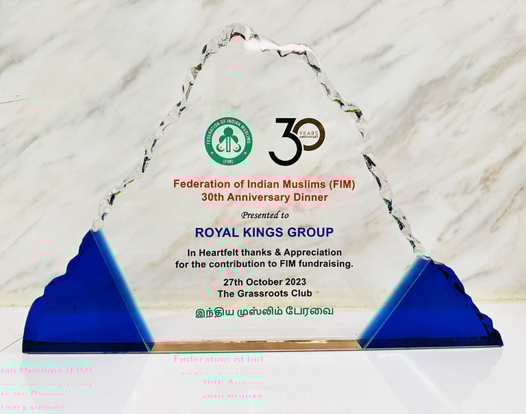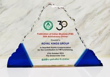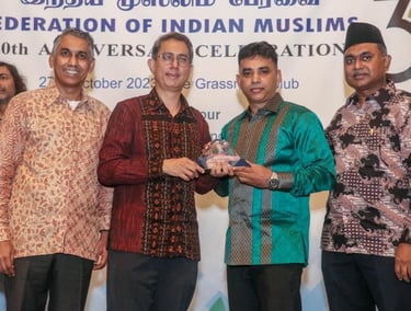 Assoc. Prof. Dr Muhammad Faishal Ibrahim Minister of State, Ministry of Home Affairs & Ministry of National Development of Singapore Awarding to Royal Kings Group for Many years of Support to Federation Of Singapore Indian Muslims - 2023