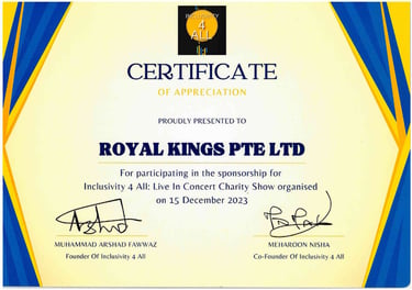Royal Kings Consultancy Pte Ltd for our contributions to Lisha - 2023
