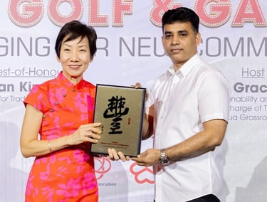 Dr Wan Rizal Chairman of the Jalan Besar Town Council and MP for Jalan Besar GRC and GPC for Health and Chair for the Action for Green Towns (AGT) Taskforce giving Token Of Appreciation to Royal King's Group for the generous support and contribution towards Kolam Ayer Divison's Lunar New Year Lunch 2024.