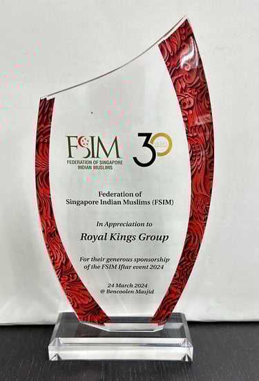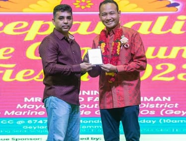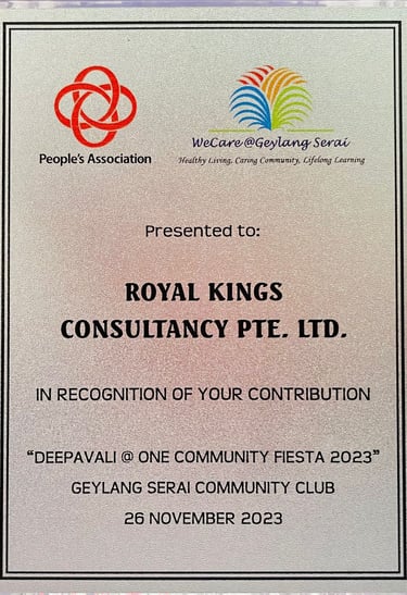 Honourable Mayor of Southeast District Singapore and Chairman Of South East CDC MR MOHD FAHMI ALIMAN Awarding to Royal Kings Consultancy Pte Ltd for our contributions to Marine Parade GROs and Geylang Serai - 2023