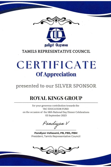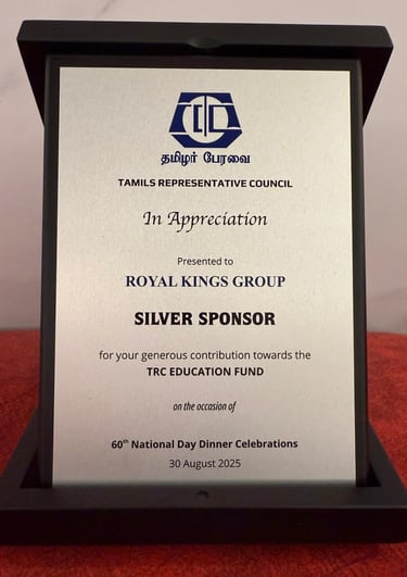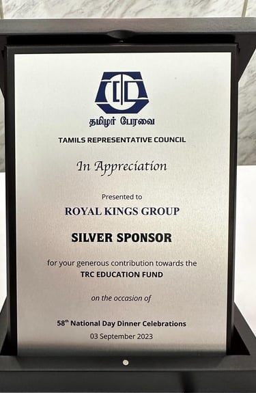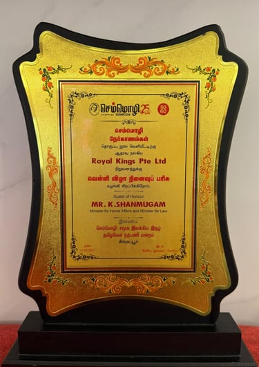 Royal Kings Group is truly humbled to be acknowledged for our contributions and support at செம்மொழி 25 (Semmozhi 25) — a Tamil cultural celebration born out of love for the Tamil language in Singapore, held in conjunction with SG60. This recognition was presented on 17 May 2025, in the esteemed presence of Guest of Honour, Mr. K. Shanmugam, Minister for Home Affairs and Minister for Law, and organised by the Semmozhi Social, Literary & Music Tamil Association, Singapore.For us, this meaningful honour is more than just recognition — it is a reaffirmation of our commitment to culture, heritage, and community.