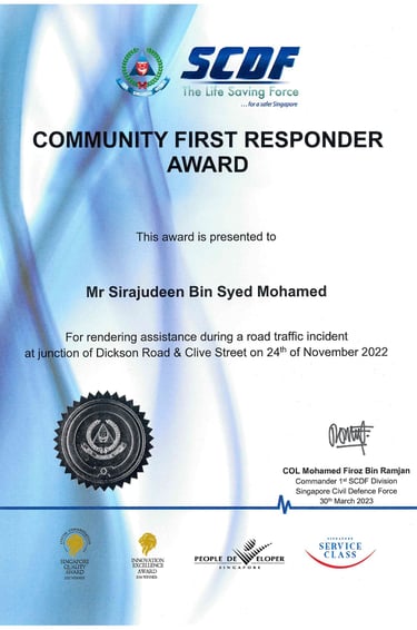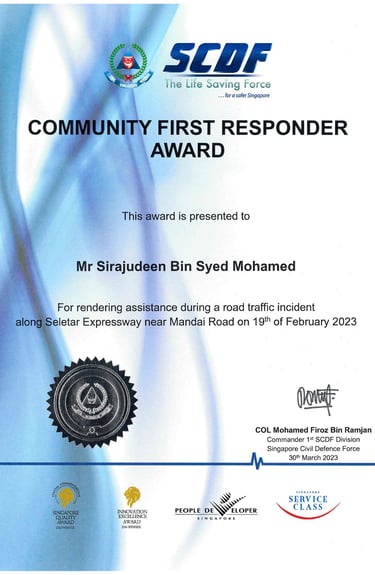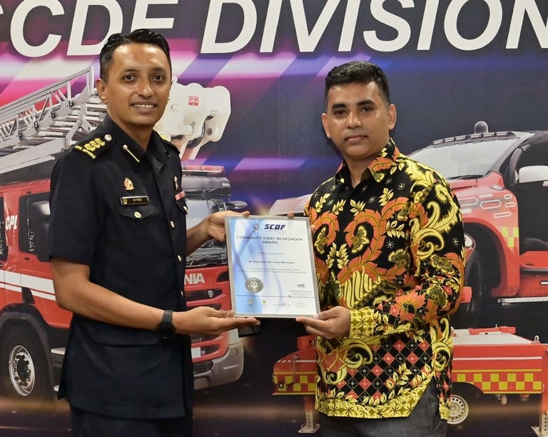 COL Firoz Ramjan SCDF 1st Division Commander in charge of Central, Alexandra, Clementi, Jurong Island, Bishan, Banyan, Marina Bay and Sentosa Fire Stations Awarding Community First Responder Awards-2023