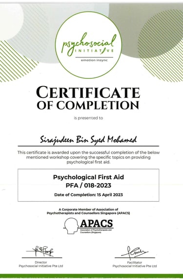 ASSOCIATION OF PSYCHOTHERAPISTS AND COUNSELLORS SINGAPORE (APACS) - 2023