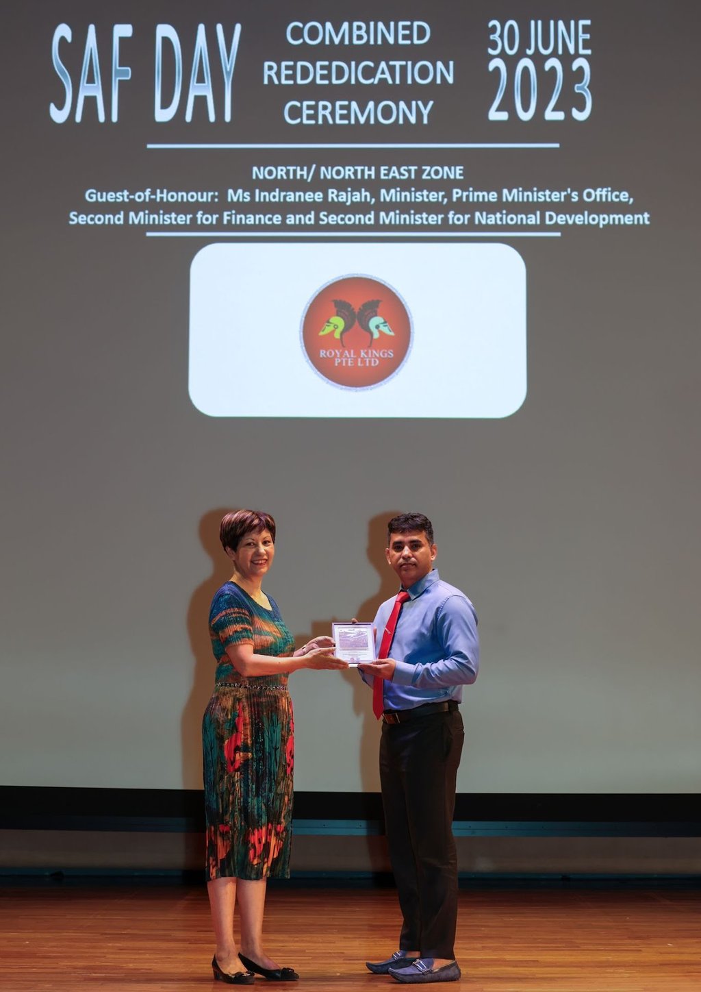 ROYAL KINGS PTE. LTD. SAF DAY - 2023 Awarded By Ms Indranee Rajah Minister Prime Minister's Office, Second Minister For Finance and Second Minister For National Development Of Singapore