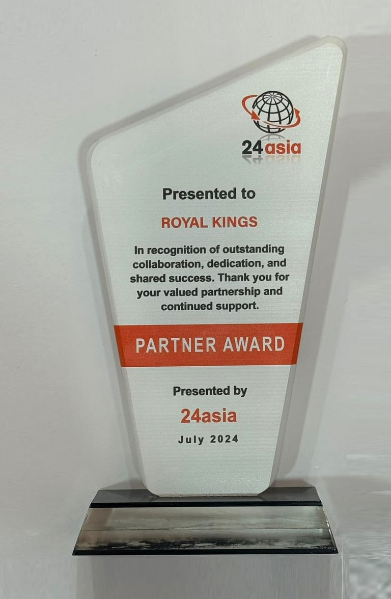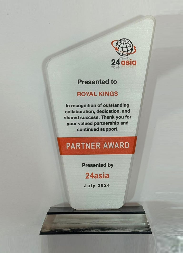 The 24 Asia Partner Award recognizes outstanding regional contributions and partnerships, highlighting excellence and innovation. This year, the Royal Kings Group received the award, demonstrating their dedication to leadership and impactful contributions. Chief of ACE Group/ Divisional Director Mr TUNG Yui Fai of MINISTRY OF MANPOWER MOM ASSURANCE, CARE & ENGAGEMENT GROUP and 24ASIA FOUNDER Mr. NAZMUL KHAN led the award ceremony, emphasizing the importance of celebrating such achievements.