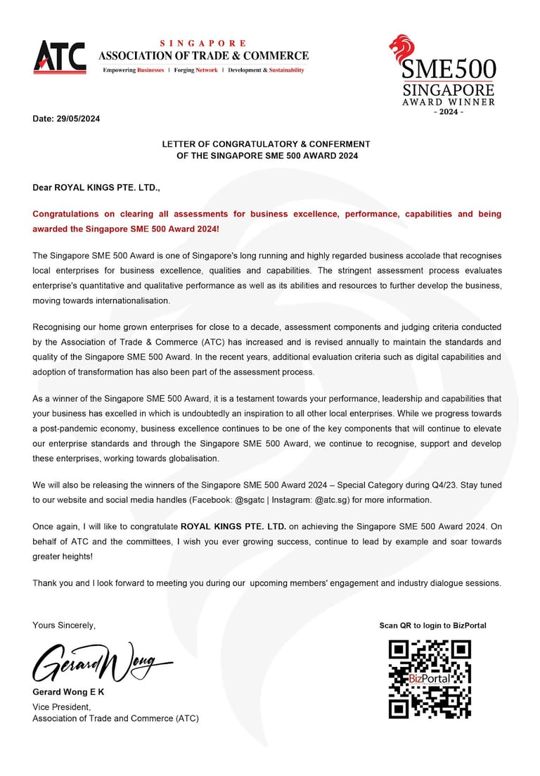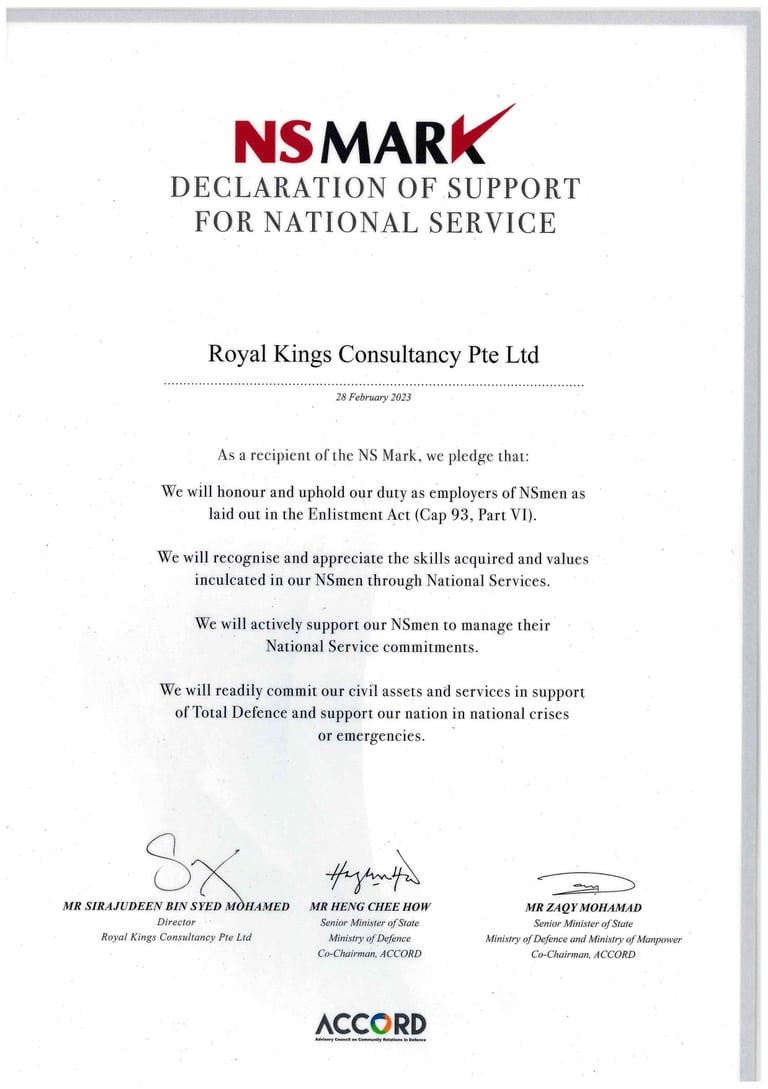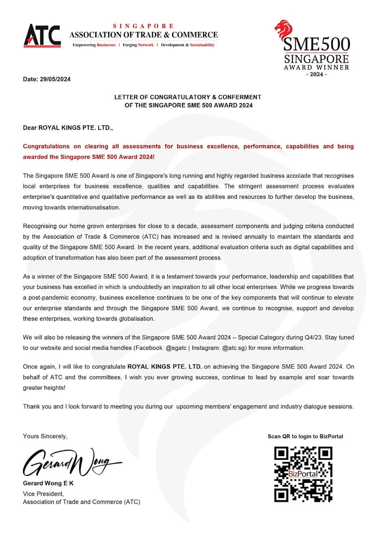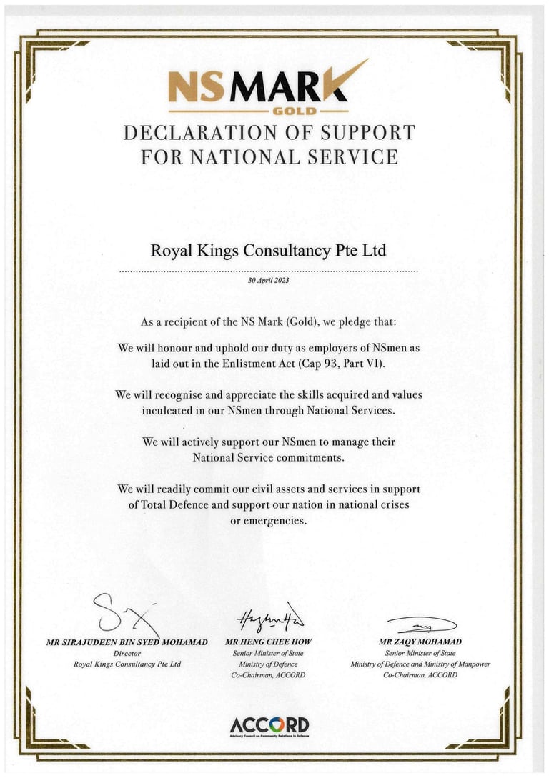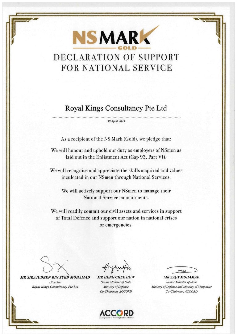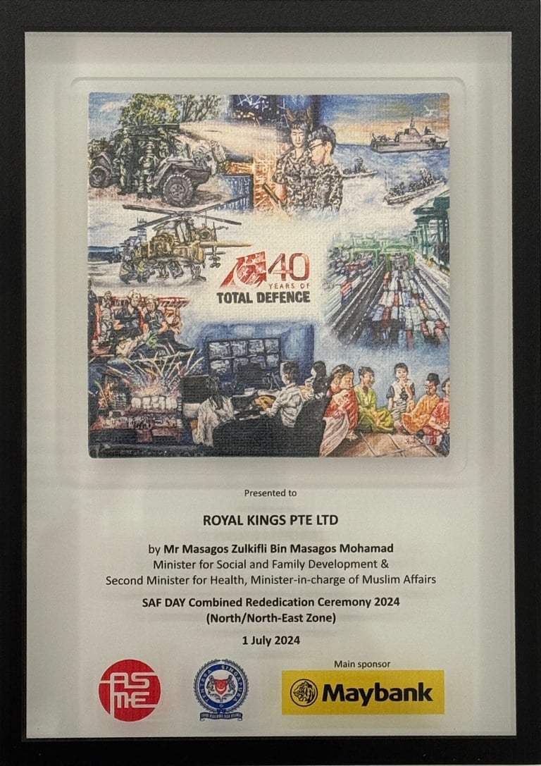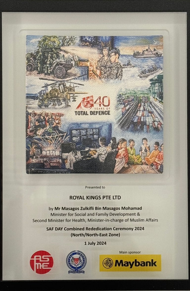 ROYAL KINGS PTE. LTD. SAF DAY - 2024 Awarded By Mr Masagos Zulkifli, Minister for Social and Family Development & Second Minister For Health, Minister-in-charge of Muslim Affairs.