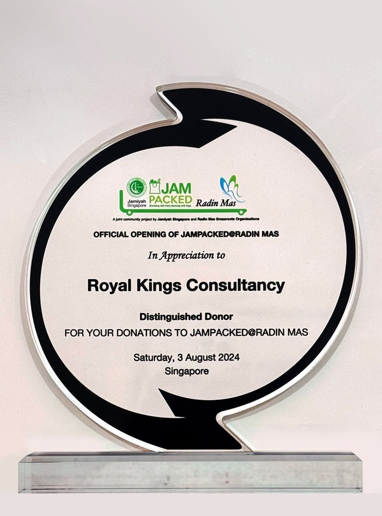 Royal Kings Group contributed to the Jampacked@Radin Mas initiative, which has been recognized and awarded by Mr. Melvin Yong Yik Chye, Member of Parliament for Radin Mas SMC! As a dedicated Community Partner of Jamiyah Singapore, RKG believe in the importance of providing essential items to those in need within our community and giving back to the society as part of our Corporate Social Responsibility.