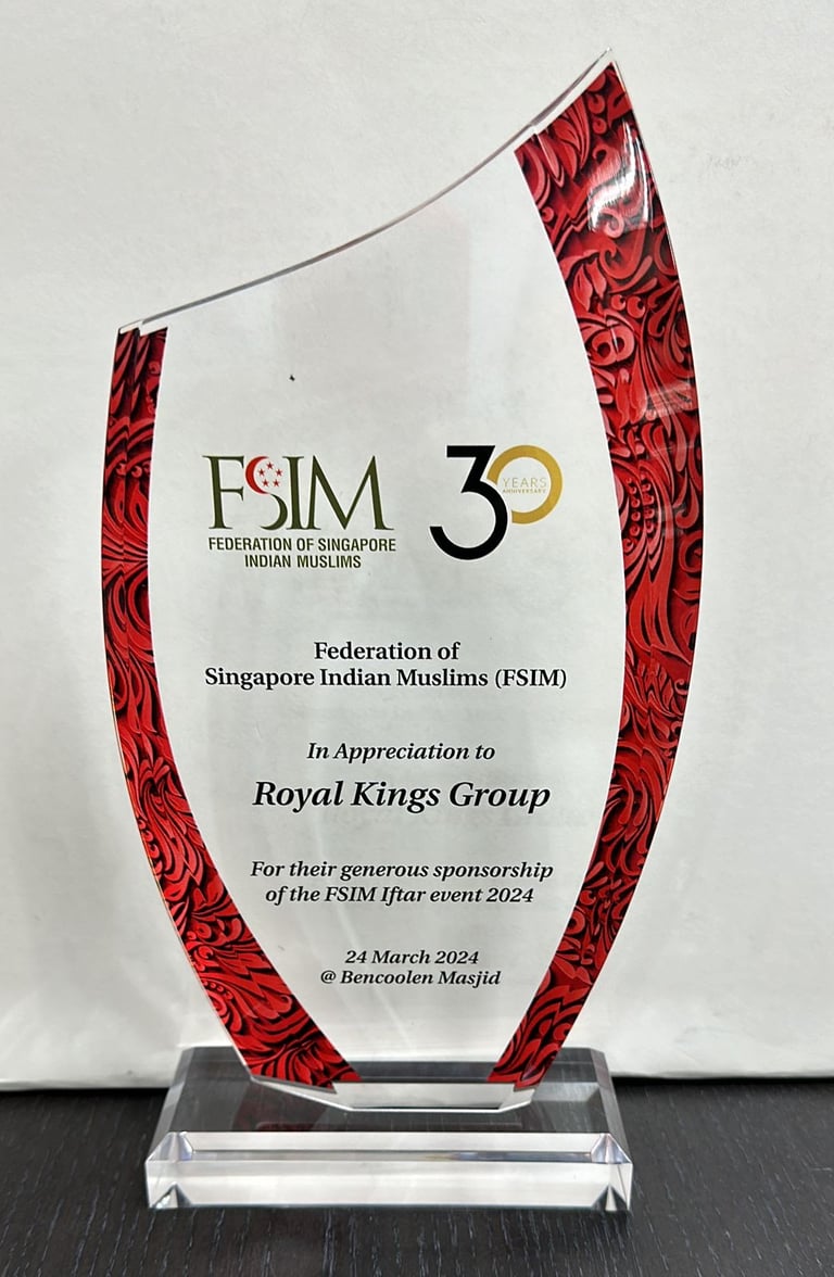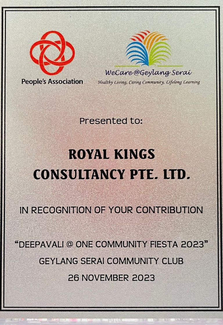 Honourable Mayor of Southeast District Singapore and Chairman Of South East CDC MR MOHD FAHMI ALIMAN Awarding to Royal Kings Consultancy Pte Ltd for our contributions to Marine Parade GROs and Geylang Serai - 2023