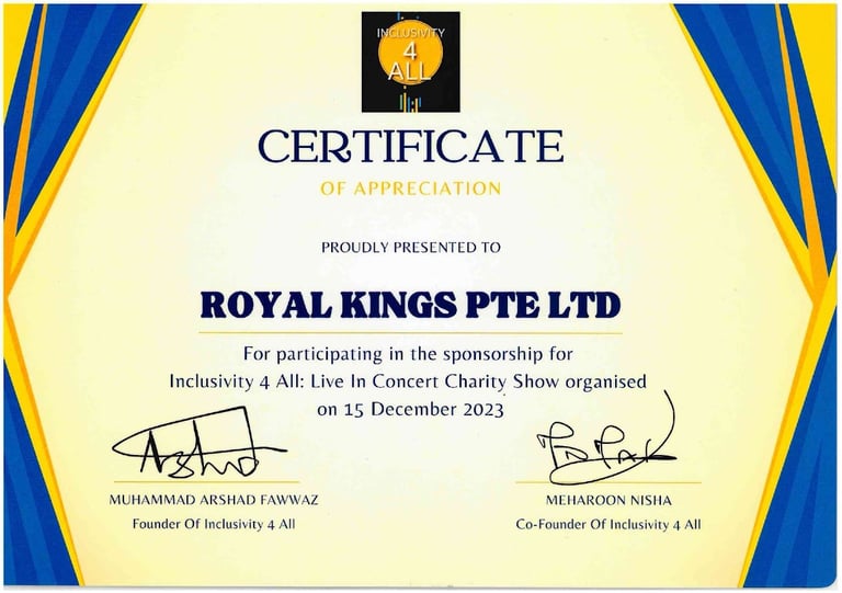 Royal Kings Consultancy Pte Ltd for our contributions to Lisha - 2023